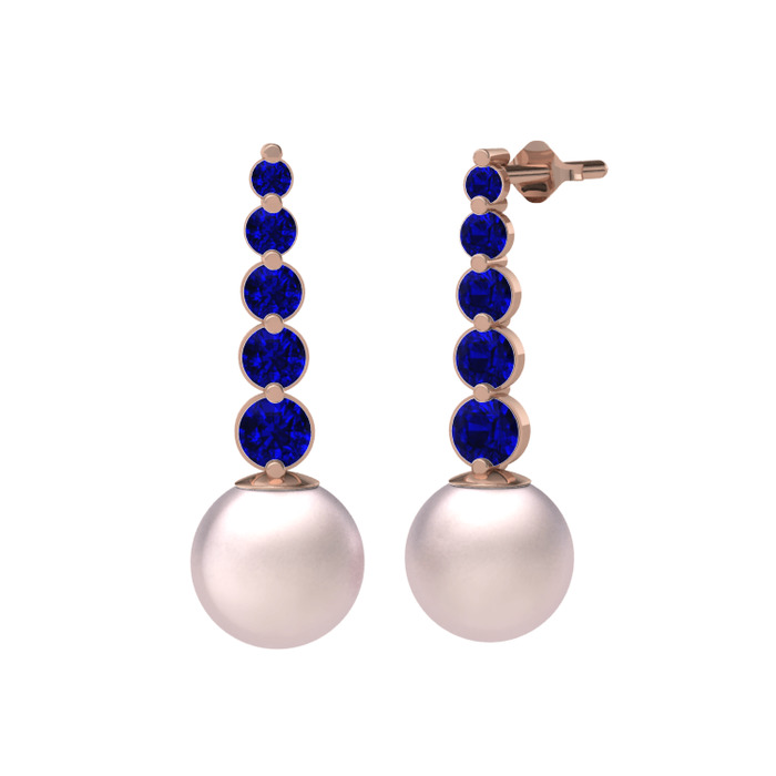 Pembe inci ve lab safir 18 ayar rose altın küpe