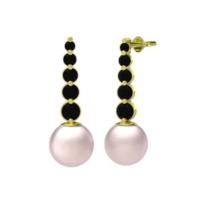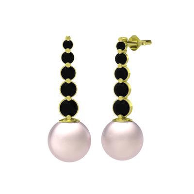 Pembe inci ve siyah zirkon 18 ayar altın küpe