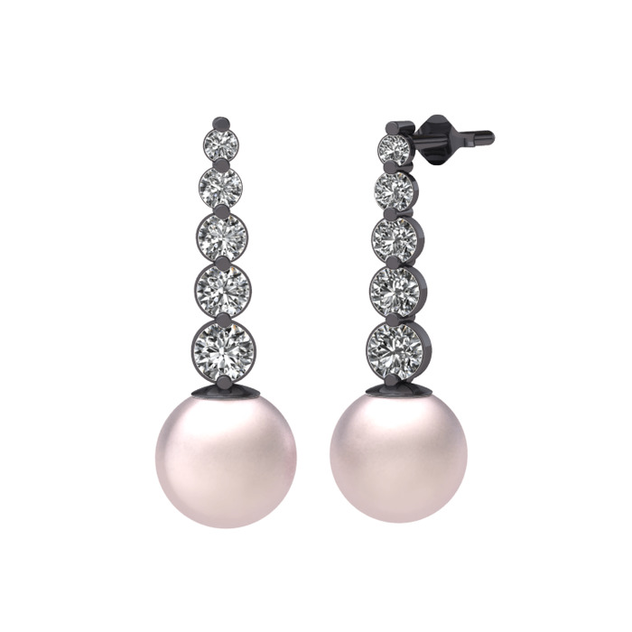 Pembe inci ve swarovski 925 ayar siyah rodyum kaplama gümüş küpe