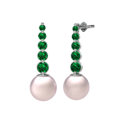 Pembe inci ve yeşil kuvars 14 ayar beyaz altın küpe