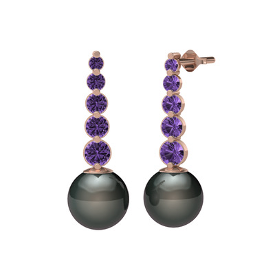 Siyah inci ve ametist 18 ayar rose altın küpe