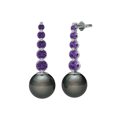 Siyah inci ve ametist 8 ayar beyaz altın küpe
