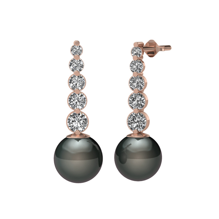 Siyah inci ve beyaz zirkon 14 ayar rose altın küpe