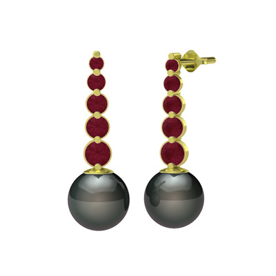 Siyah inci ve kök yakut 14 ayar altın küpe