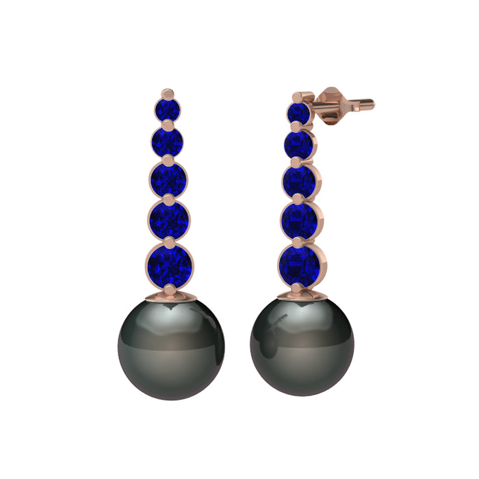 Siyah inci ve lab safir 18 ayar rose altın küpe