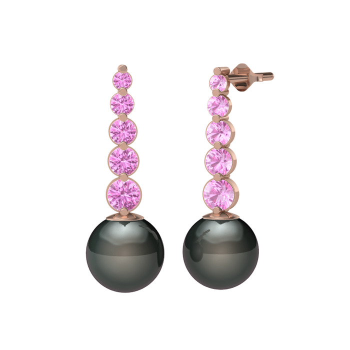 Siyah inci ve pembe kuvars 8 ayar rose altın küpe