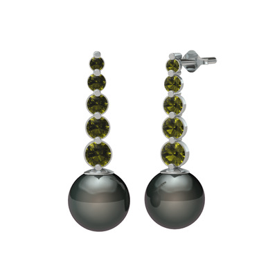 Siyah inci ve peridot 14 ayar beyaz altın küpe