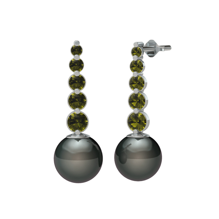 Siyah inci ve peridot 8 ayar beyaz altın küpe