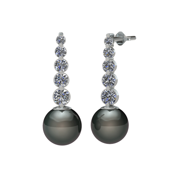 Siyah inci ve pırlanta 14 ayar beyaz altın küpe (2.4 karat)