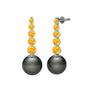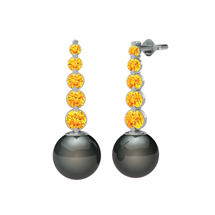 Siyah inci ve sitrin 18 ayar beyaz altın küpe
