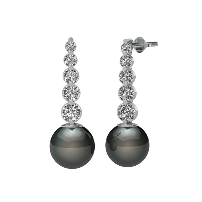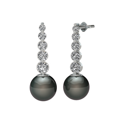 Siyah inci ve swarovski 18 ayar beyaz altın küpe