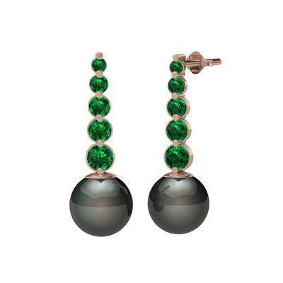 Siyah inci ve yeşil kuvars 8 ayar rose altın küpe