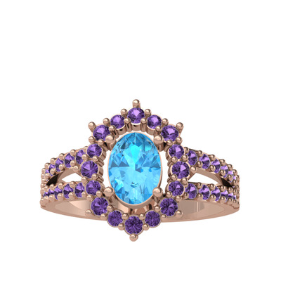 Akuamarin ve ametist 18 ayar rose altın yüzük