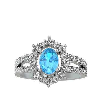 Akuamarin ve beyaz zirkon 8 ayar beyaz altın yüzük