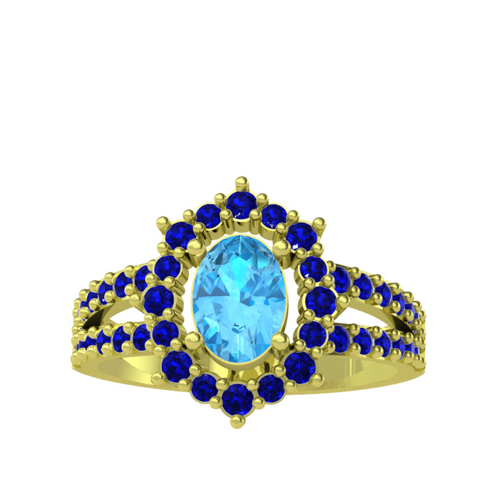 Akuamarin ve lab safir 14 ayar altın yüzük