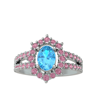 Akuamarin ve pembe kuvars 14 ayar beyaz altın yüzük