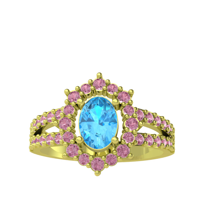 Akuamarin ve pembe kuvars 18 ayar altın yüzük