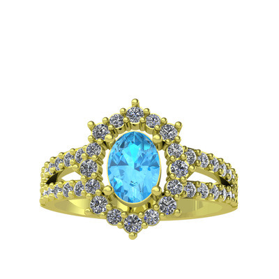 Akuamarin ve pırlanta 14 ayar altın yüzük (0.8 karat)