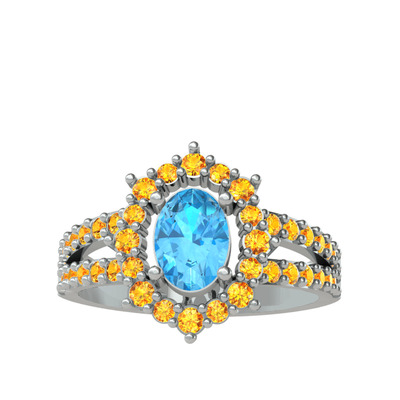 Akuamarin ve sitrin 14 ayar beyaz altın yüzük
