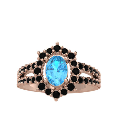 Akuamarin ve siyah zirkon 925 ayar rose altın kaplama gümüş yüzük