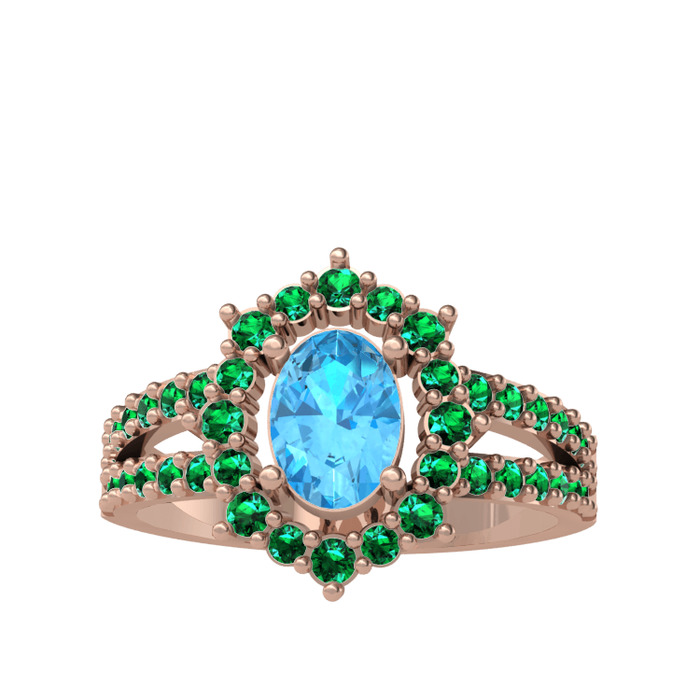 Akuamarin ve yeşil kuvars 18 ayar rose altın yüzük