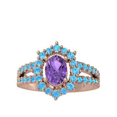 Ametist ve akuamarin 14 ayar rose altın yüzük