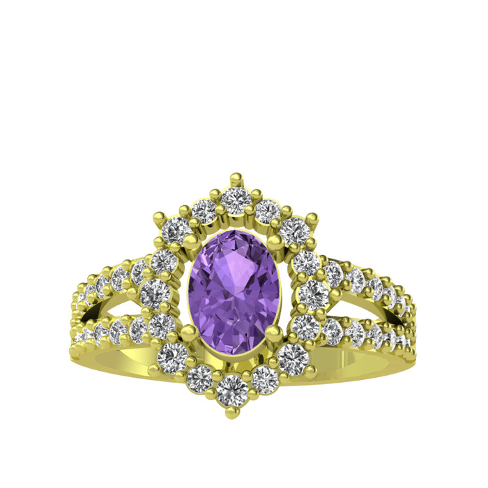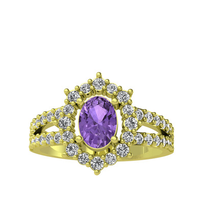 Ametist ve beyaz zirkon 925 ayar altın kaplama gümüş yüzük