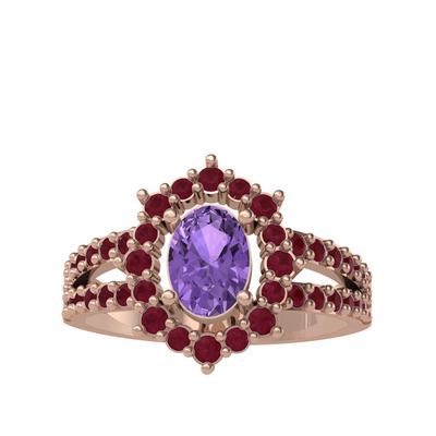 Ametist ve kök yakut 8 ayar rose altın yüzük