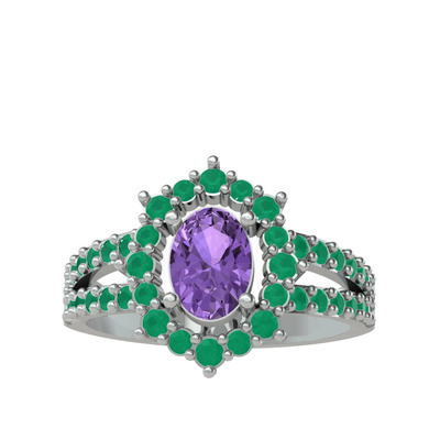 Ametist ve kök zümrüt 8 ayar beyaz altın yüzük