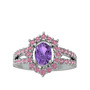 Ametist ve pembe kuvars 14 ayar beyaz altın yüzük