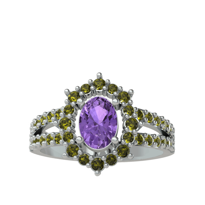 Ametist ve peridot 925 ayar gümüş yüzük