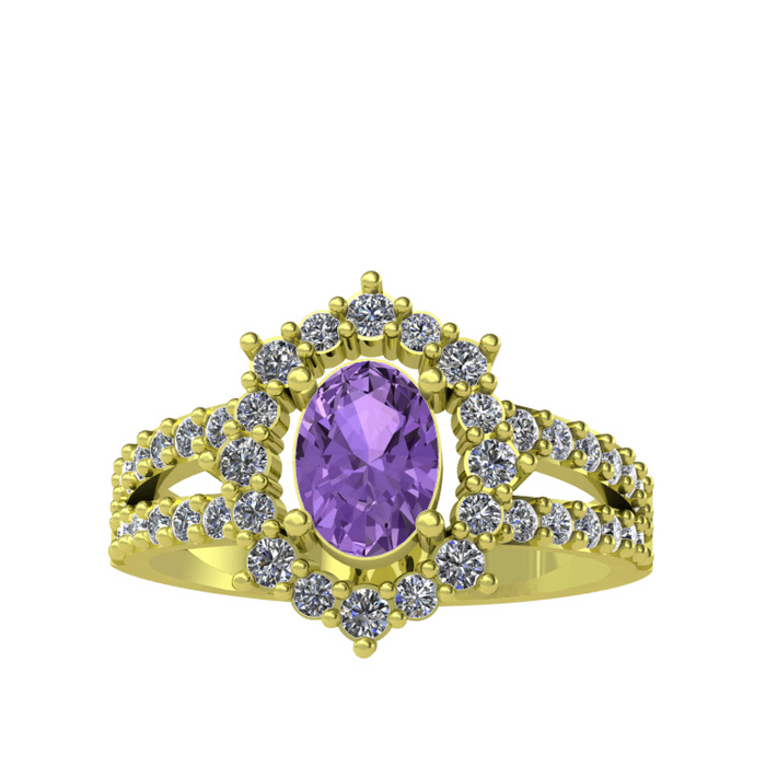 Ametist ve pırlanta 925 ayar altın kaplama gümüş yüzük (0.8 karat)