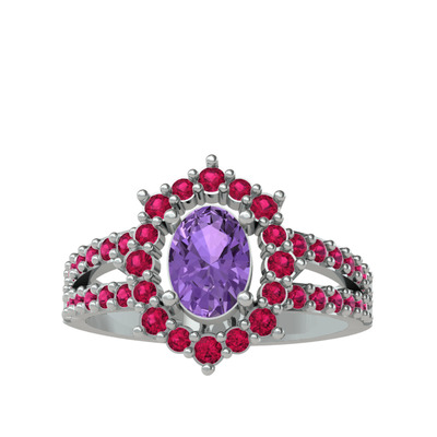 Ametist ve rodolit garnet 8 ayar beyaz altın yüzük