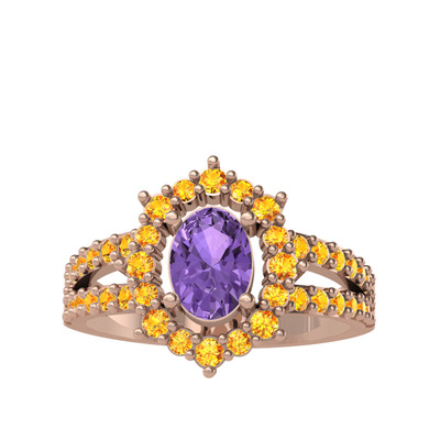 Ametist ve sitrin 18 ayar rose altın yüzük