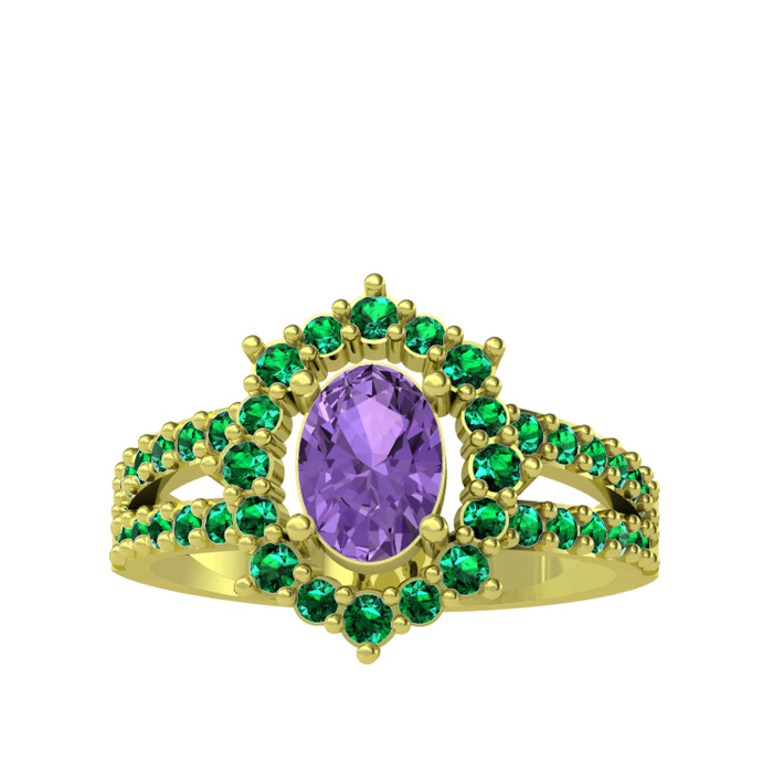 Ametist ve yeşil kuvars 18 ayar altın yüzük