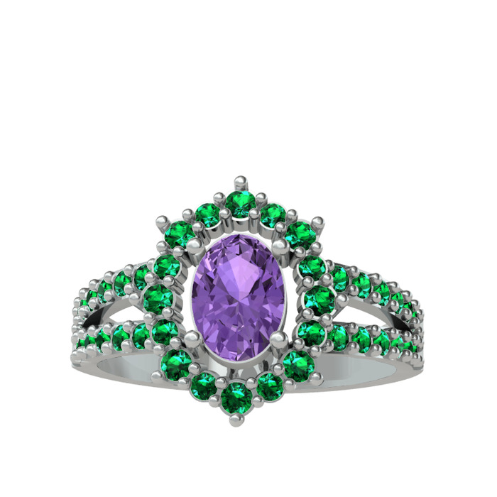 Ametist ve yeşil kuvars 925 ayar gümüş yüzük