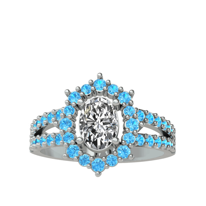 Beyaz zirkon ve akuamarin 18 ayar beyaz altın yüzük