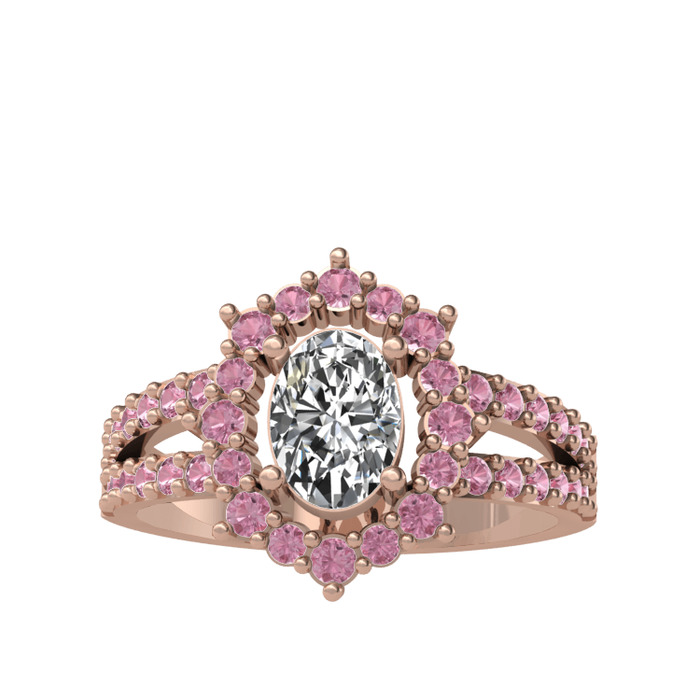 Beyaz zirkon ve pembe kuvars 8 ayar rose altın yüzük