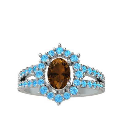Dumanlı kuvars ve akuamarin 14 ayar beyaz altın yüzük
