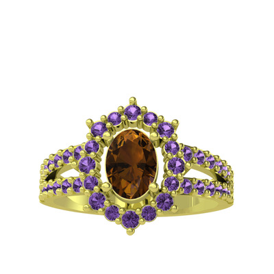 Dumanlı kuvars ve ametist 14 ayar altın yüzük