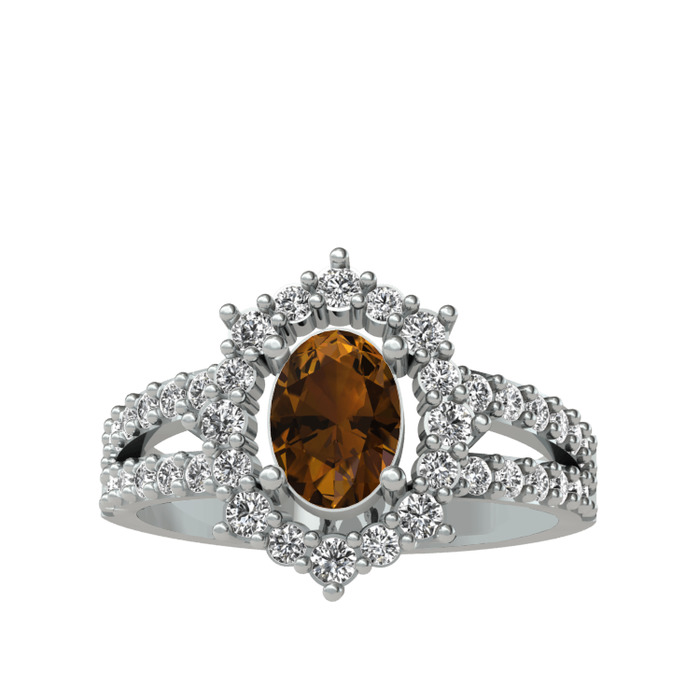 Dumanlı kuvars ve beyaz zirkon 925 ayar gümüş yüzük