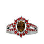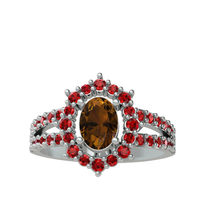 Dumanlı kuvars ve garnet 8 ayar beyaz altın yüzük