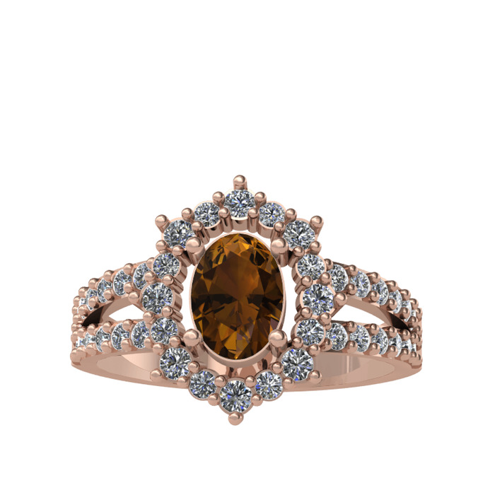 Dumanlı kuvars ve pırlanta 8 ayar rose altın yüzük (0.8 karat)
