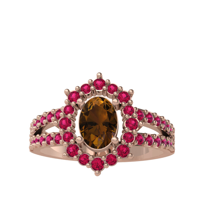 Dumanlı kuvars ve rodolit garnet 18 ayar rose altın yüzük