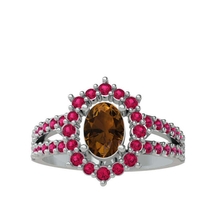 Dumanlı kuvars ve rodolit garnet 925 ayar gümüş yüzük