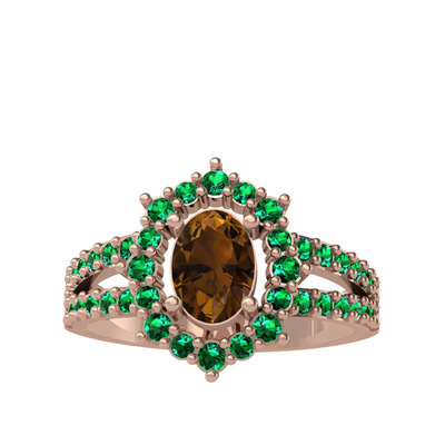 Dumanlı kuvars ve yeşil kuvars 18 ayar rose altın yüzük