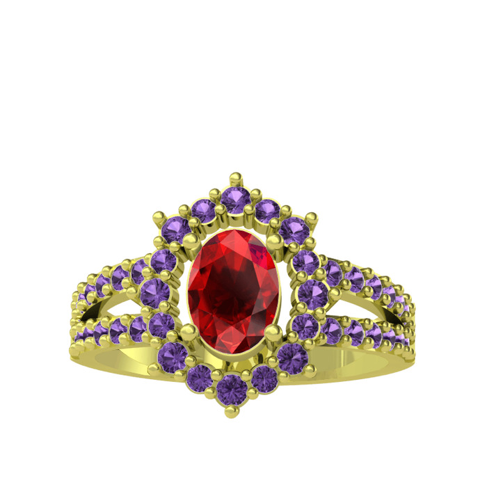 Garnet ve ametist 18 ayar altın yüzük