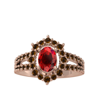 Garnet ve dumanlı kuvars 18 ayar rose altın yüzük
