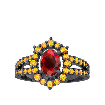Garnet ve sitrin 925 ayar siyah rodyum kaplama gümüş yüzük