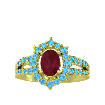 Kök yakut ve akuamarin 925 ayar altın kaplama gümüş yüzük
